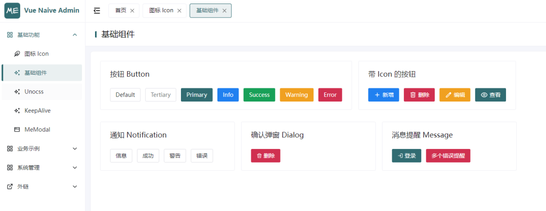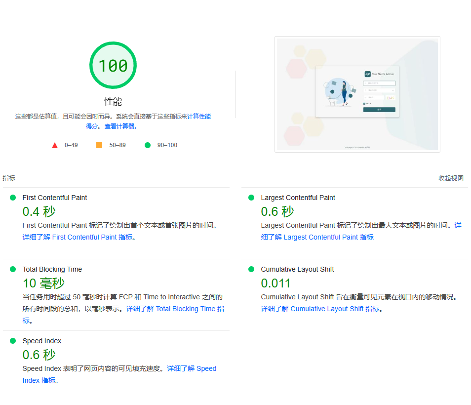 Vite + Vue3 + PiniaUnocss,优雅、轻量、易用Pinia 状态管理,支持状态持久化iconify + unocss 图标方案,支持自定义图标,支持动态渲染极致简洁的代码风格和清爽的页面设计,审美在线,主题轻松定制扁平化路由设计,每一个组件都可以是一个页面,告别多级路由 KeepAlive 难实现问题基于权限动态生成路由,无需额外定义路由,403和404页面可区分,而不是无权限也跳404无感刷新,用户登录态可控,安全与体验缺一不可message 全局工具方法,支持批量提醒,支持跨页面单例模式Page 组件、CRUD 表格组件及 Modal组件等,简单易用,减少大量重复性工作根据测试其性能也是非常好。