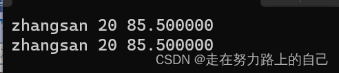 printf("%s %d %f\n", tmp.name, tmp.age, tmp.score);