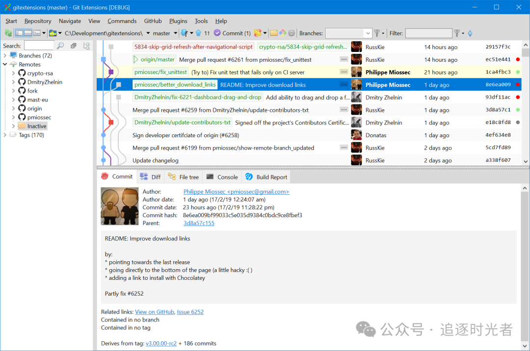 Git Extensions 是一款用于管理 git 仓库的独立用户界面工具。它还与 Windows Explorer 和 Microsoft Visual Studio (2015/2017/2019) 集成。