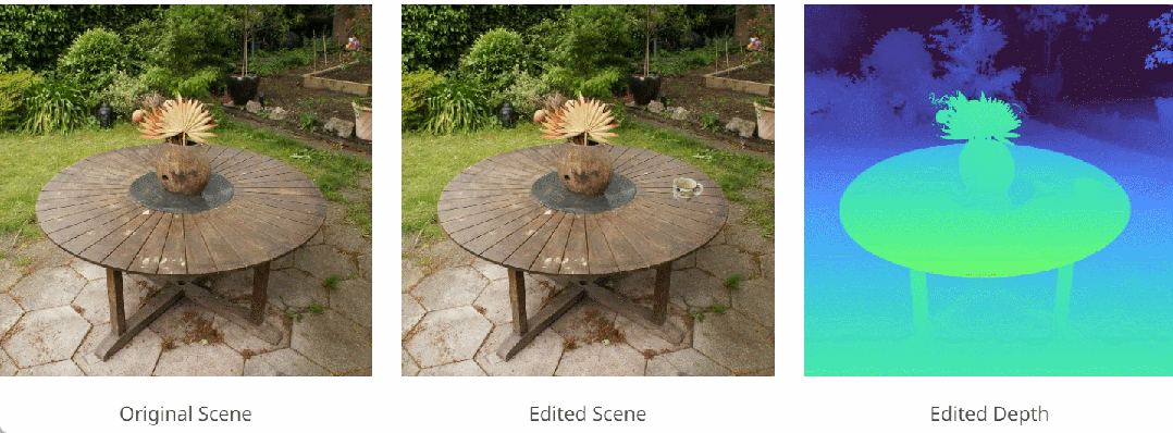 图 4 是与基线方法的比较。由结果可知,使用 I-N2N 会导致场景中的全局更改,并且这种改变是更改现有对象而不是创建新对象,例如 I-N2N 把 4a 中的乐高卡车变成了一个马克杯,把 4b 中厨房柜台上的物品变成了一个餐盘。