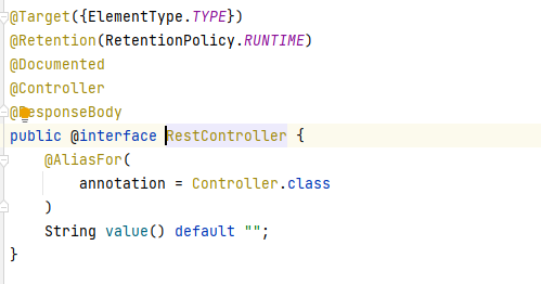 }这个注解其实等价于@Controller+@ResponseBody,可以在源码看到。