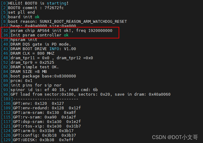 根据boot0的系统log,可以查看到当前lspsram加载的频率,如下图所示: