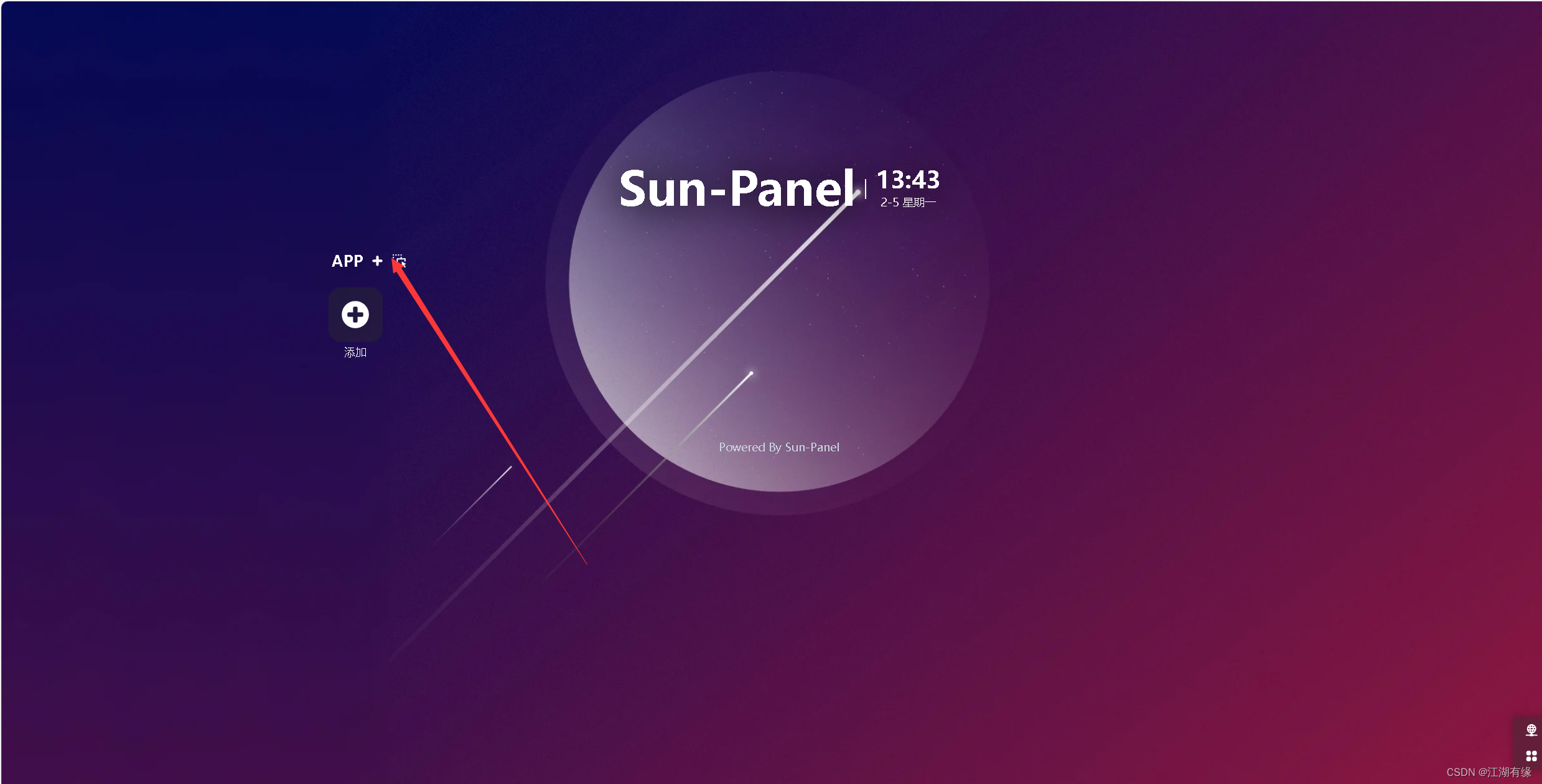 在Sun-Panel首页,APP旁点击“+”号,开始新建应用网址信息。