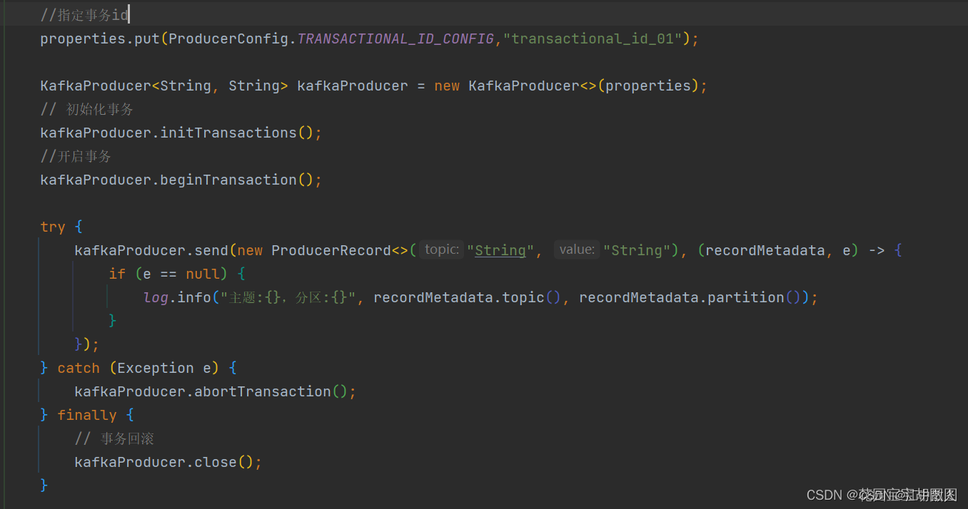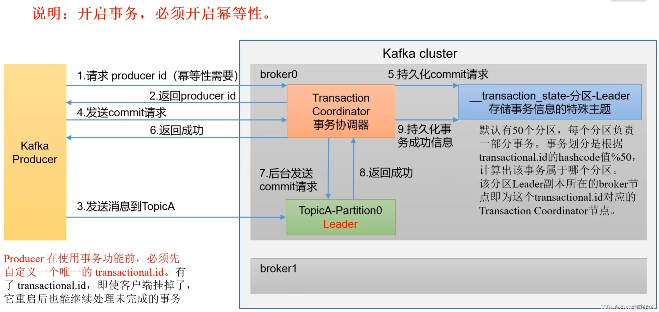 所以幂等性只能保证的是在单分区单会话内不重复。如果想保证数据一定不重复,就需要开启事务。