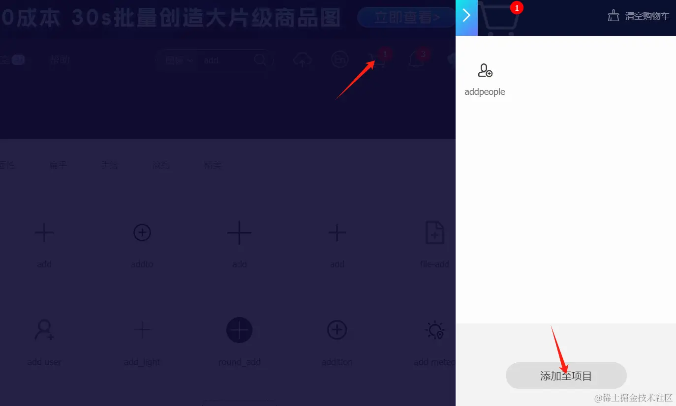 dist_file: 'lib/app/app_icon.dart' # 生成的代码文件地址在 iconfont.cn 挑选图标,通过加入购物车,创建项目: