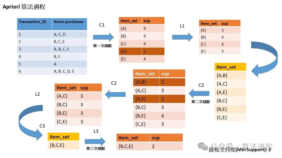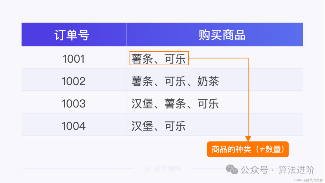 使用场景:常用于市场篮子分析,如超市购物篮分析,以发现商品之间的关联关系。