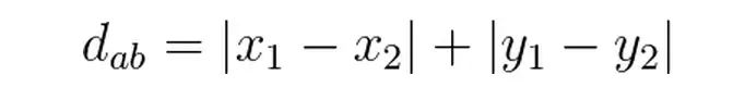 曼哈顿距离: 也称曼哈顿街区距离,就如从街区的一个十字路口点到另一个十字路口点的距离, 二维空间(多维空间按同理扩展)用公式表示为