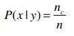 条件概率(后验概率):y事件已经发生,观察y数据集后得出x发生的概率。如P(买有机食品|买绿茶),通过以下公式计算(nc表示y数据集下x的发生频数,n为y数据集的总数):