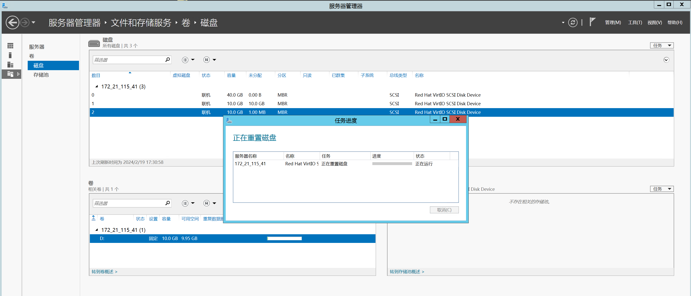 上图服务器管理器那个界面的重置磁盘我验证了下,并不会清理底层数据,相当于执行了diskpart命令里的clean命令