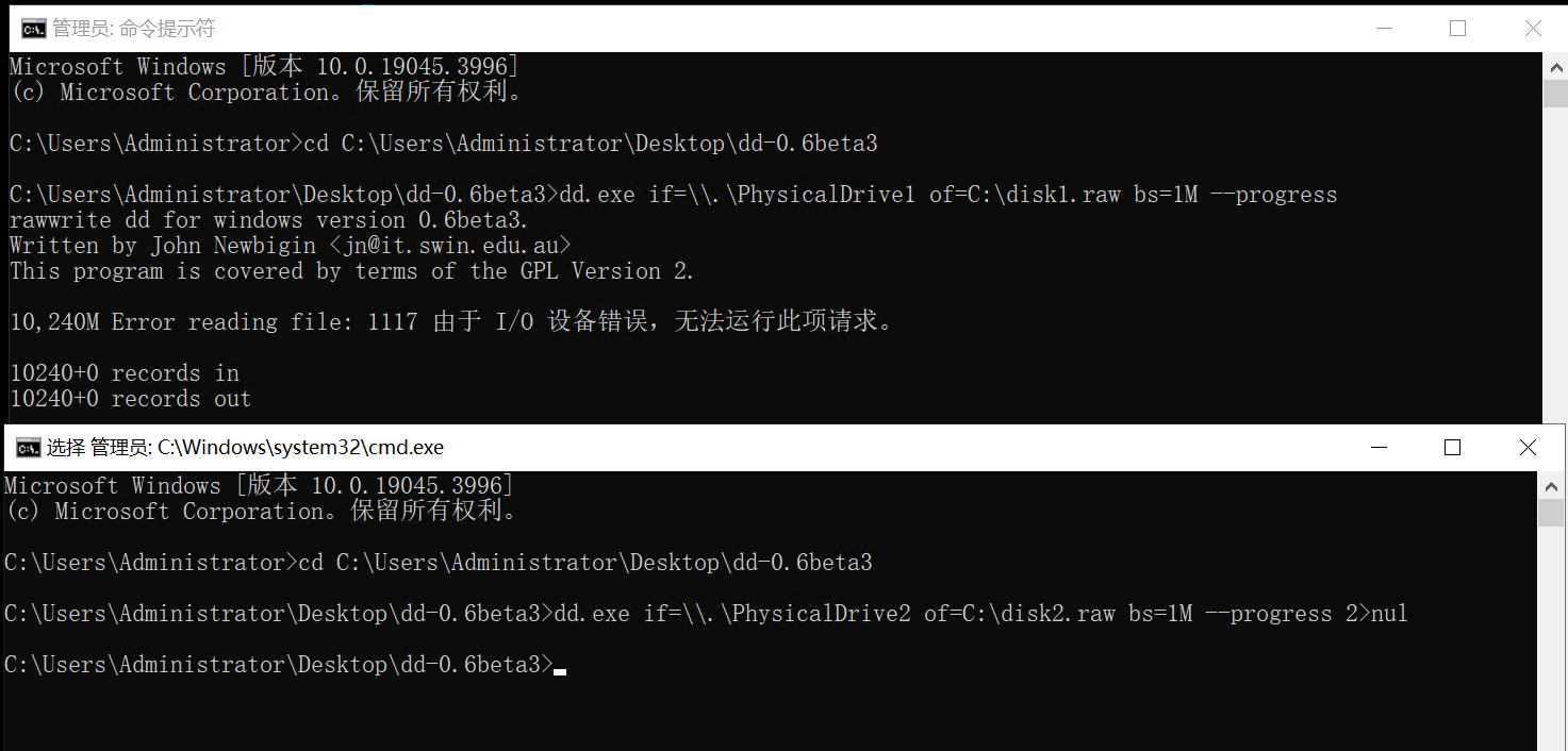 不好的一点是,会出现“Error reading file: 1117 由于 I/O 设备错误,无法运行此项请求”,这个dd.exe命令十几年没更新过了