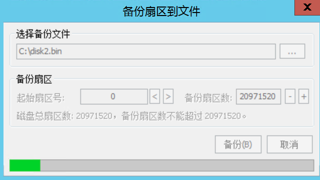 dd.exe if=\\.\PhysicalDrive2 of=C:\disk2.raw bs=1M --progress 2>nul注意目标位置不要指定到原盘,否则会破坏底层块
