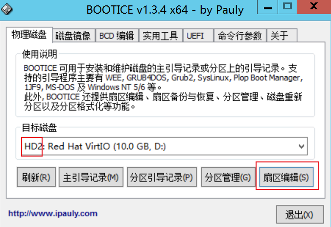 ③用BOOTICEx64_2016.06.17_v1.3.4.0的扇区编辑功能(备份扇区到文件)导出块文件(默认格式是.bin,其实就是.raw)
