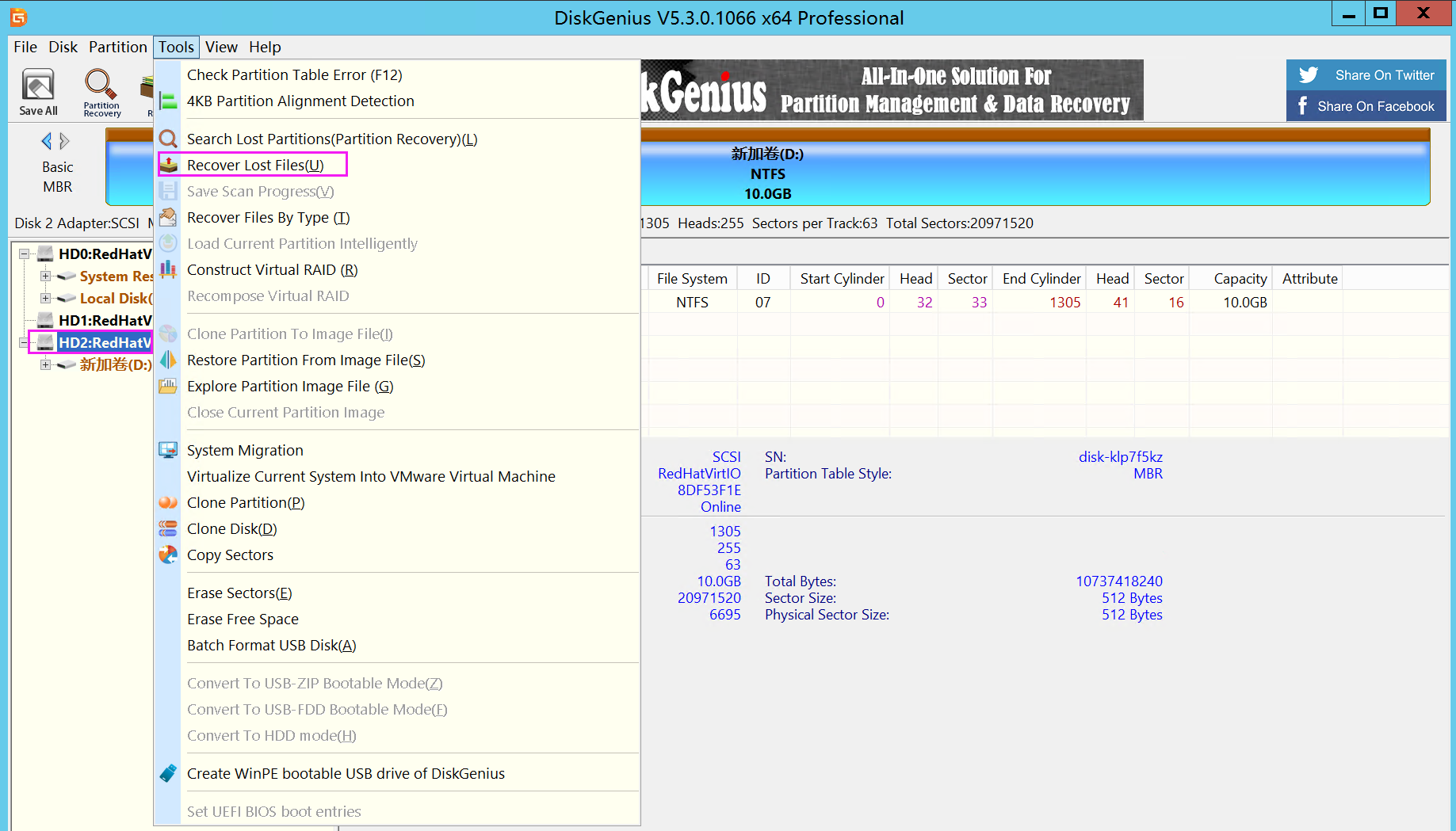 尴尬的是重置后还分区、格式化了,这有点难办(我误操作的是磁盘2),网上找了diskgenius v5.3.0.1066 x64英文版尝试找文件
