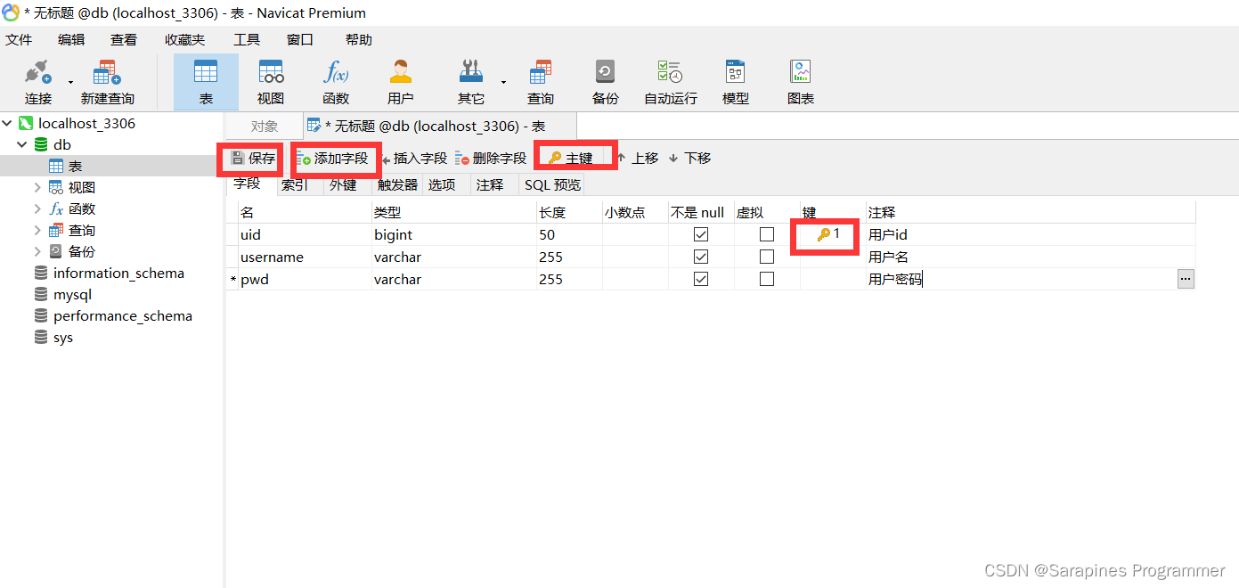 右击表->新建表