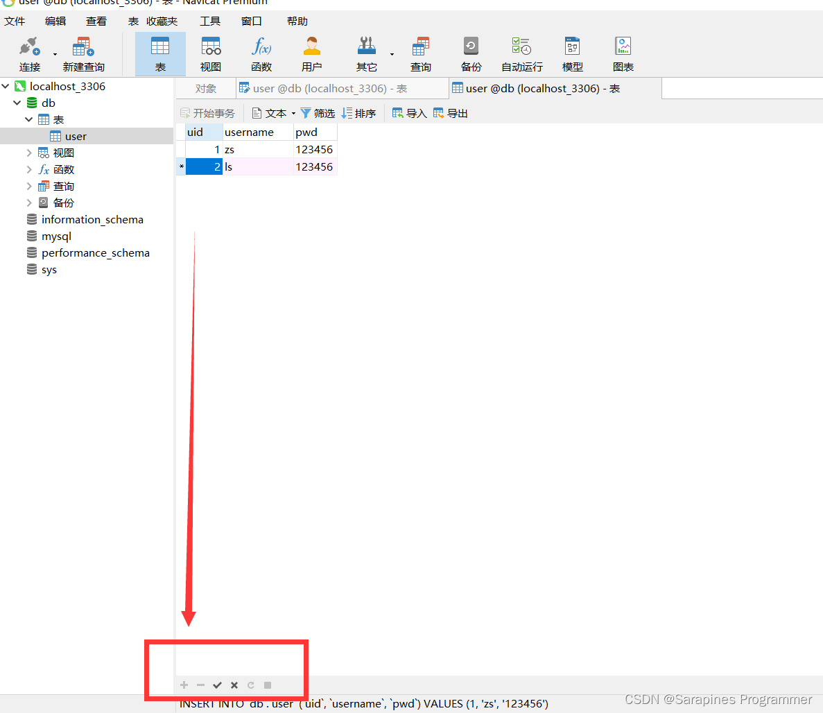 输入MySQL语句,右击表->刷新,查看插入成功