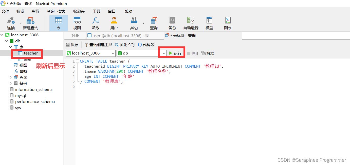 输入MySQL语句,右击表->刷新