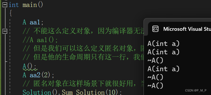 // 但是他的生命周期只有这一行,我们可以看到下一行他就会自动调用析构函数