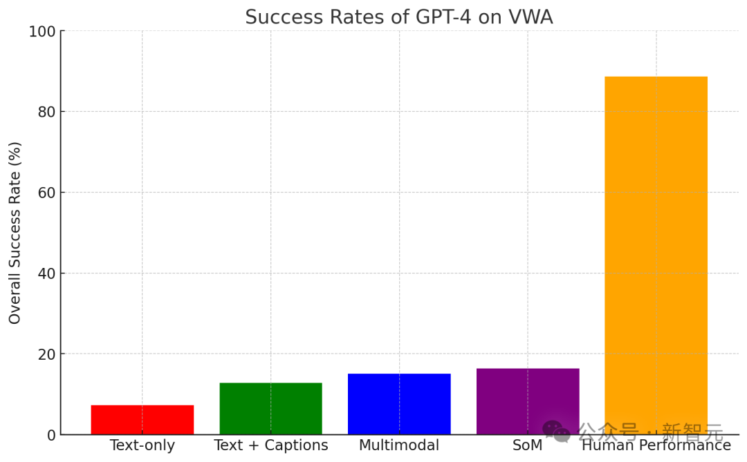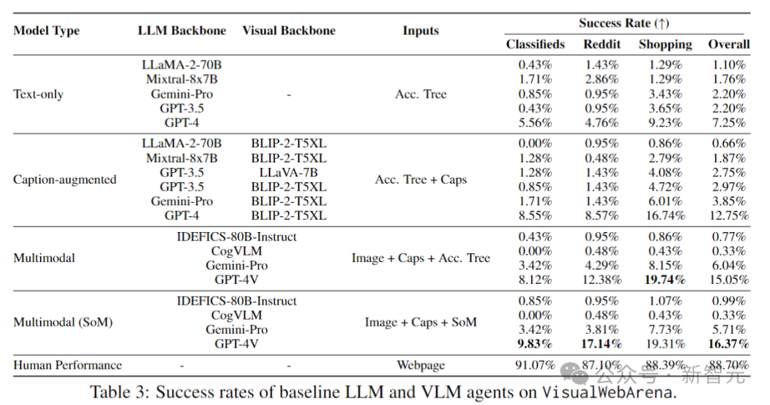 尽管多模态模型通常会提高VisualWebArena的性能,但仍有很大的差距需要弥合。
