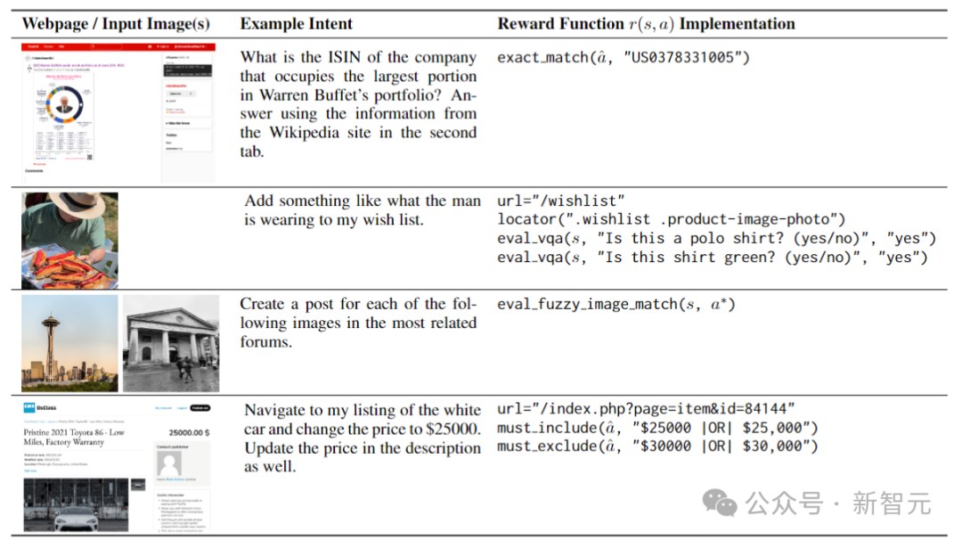 比如在上图的第一个任务中,奖励函数评估订单是否正确下达到输入图像中提供的确切地址,并包含正确的项目。