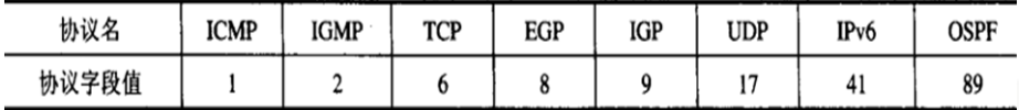 协议: 8 bit,指出此数据报携带的数据使用何种协议,以便目的主机的IP层将数据部分上交给对应的进程处理。