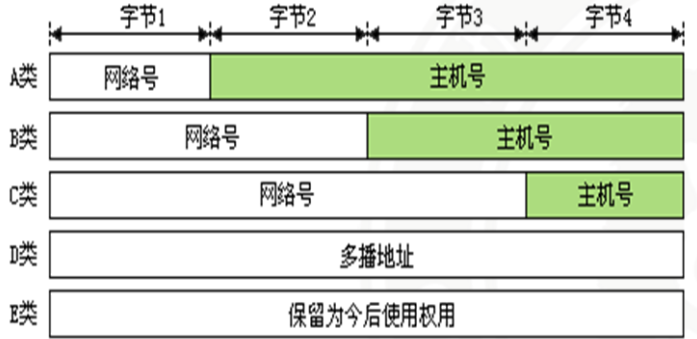 D类地址和E类地址不划分网络号和主机号。