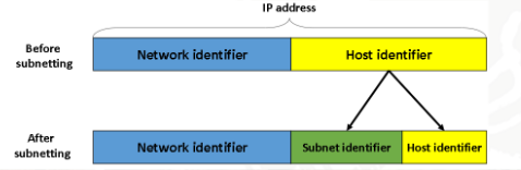 Subnetting 提高IP空间的利用率,增加IP分配的灵活性。 从主机号借用若干个比特作为子网号subnet-id,而主机号host-id也就相应减少若干个比特