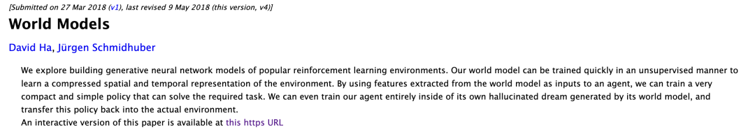 论文题目:Recurrent World Models Facilitate Policy Evolution 论文地址: https://worldmodels.github.io/