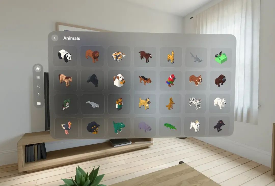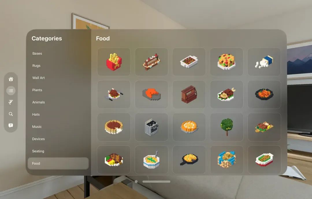 这款应用会给用户展示一组事物的目录,这些事物是人们使用《Rooms》应用创建和上传的自制对象。当你单击某个类别或标签时,你会看到一组事物: