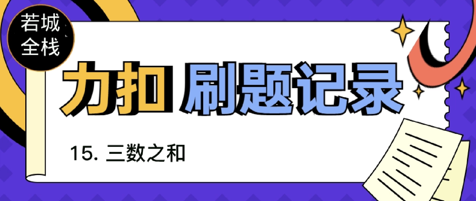 return resnums.sort():对输入的数组 nums 进行原地排序,使其按照升序排列。n = len(nums):获取数组 nums 的长度,即元素个数。res = []:创建一个空列表 res,用于存储符合条件的三元组结果。for i in range(n)::遍历数组 nums,以每个元素 nums[i] 作为基准。if i > 0 and nums[i] == nums[i-1]: continue:如果当前元素与前一个元素相等,则跳过循环,以避免重复计算。left = i + 1:初始化指针 left,指向当前元素的下一个位置。right = n - 1:初始化指针 right,指向数组的最后一个元素。while left < right::在 left < right 的条件下,进行循环。total = nums[i] + nums[left] + nums[right]:计算三个数的和 total。if total == 0::如果总和等于 0,说明找到了满足条件的三元组。 [nums[i], nums[left], nums[right]] 加入结果列表 res。elif total < 0::如果总和小于 0,将左指针右移一位。else::如果总和大于 0,将右指针左移一位。return res:返回结果列表 res。solution = Solution()