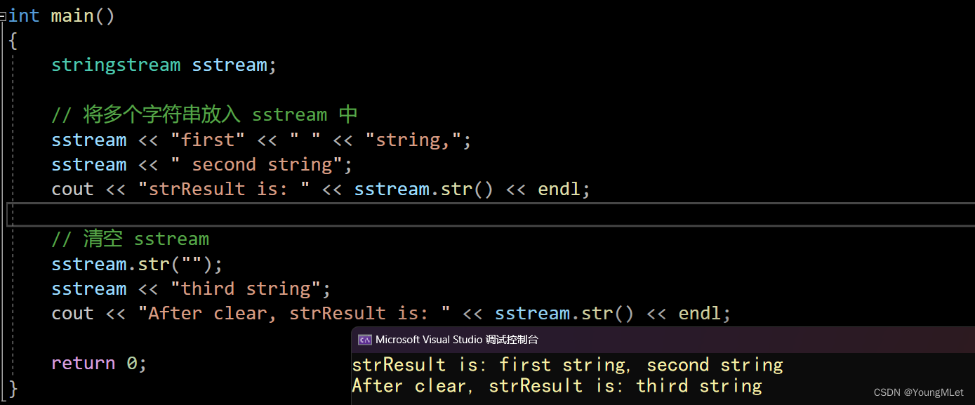 cout << "After clear, strResult is: " << sstream.str() << endl;