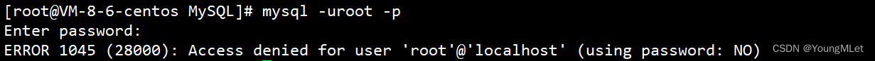 但是我们发现登录不上,但是大家如果下的 mysql 版本比较新的话,直接回车是可以登录的。