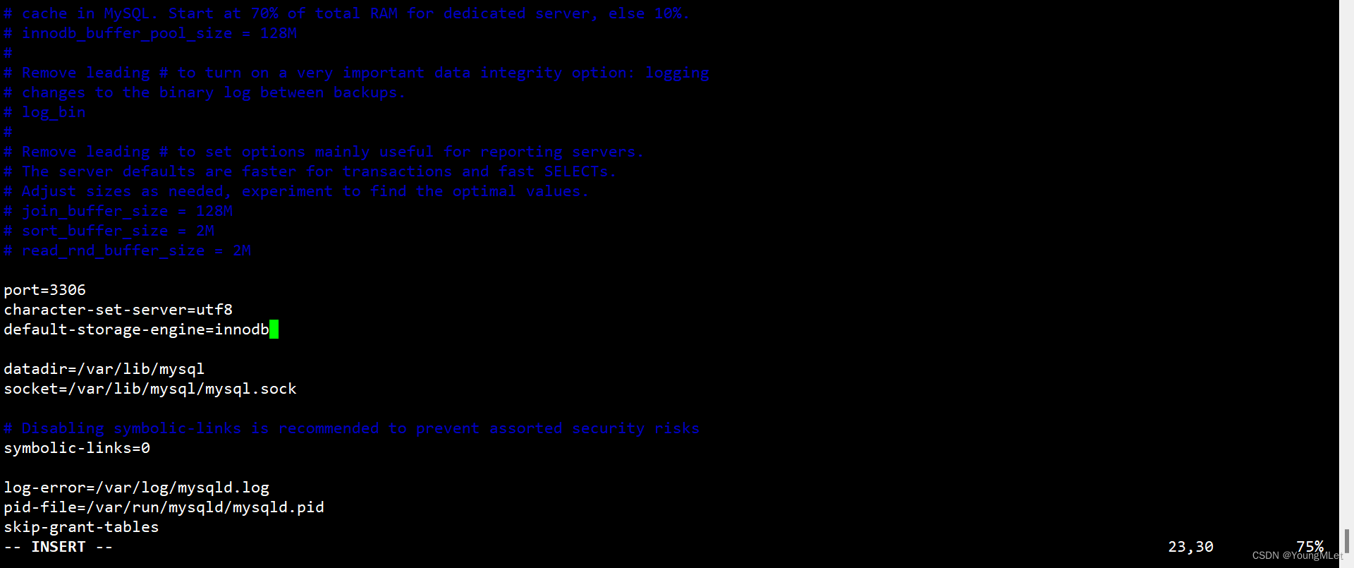 default-storage-engine=innodb其中 port 是服务端口号,我们后面再介绍;后面两个是编码格式,我们后面也会介绍。