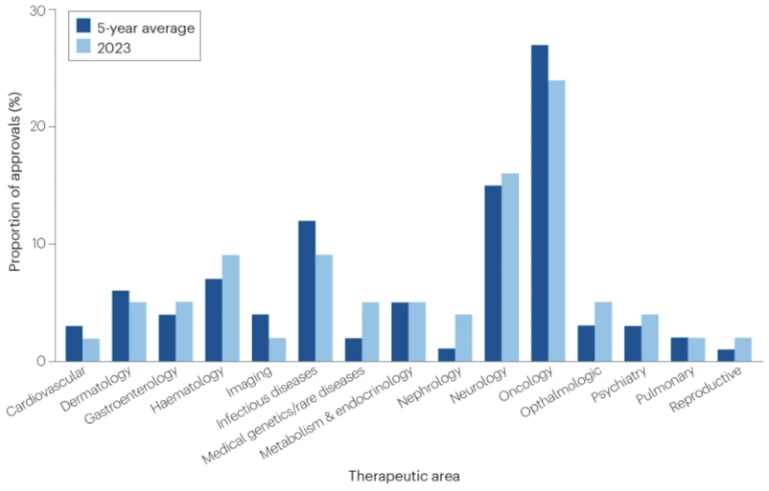 图1:按治疗领域划分的CDER批准情况