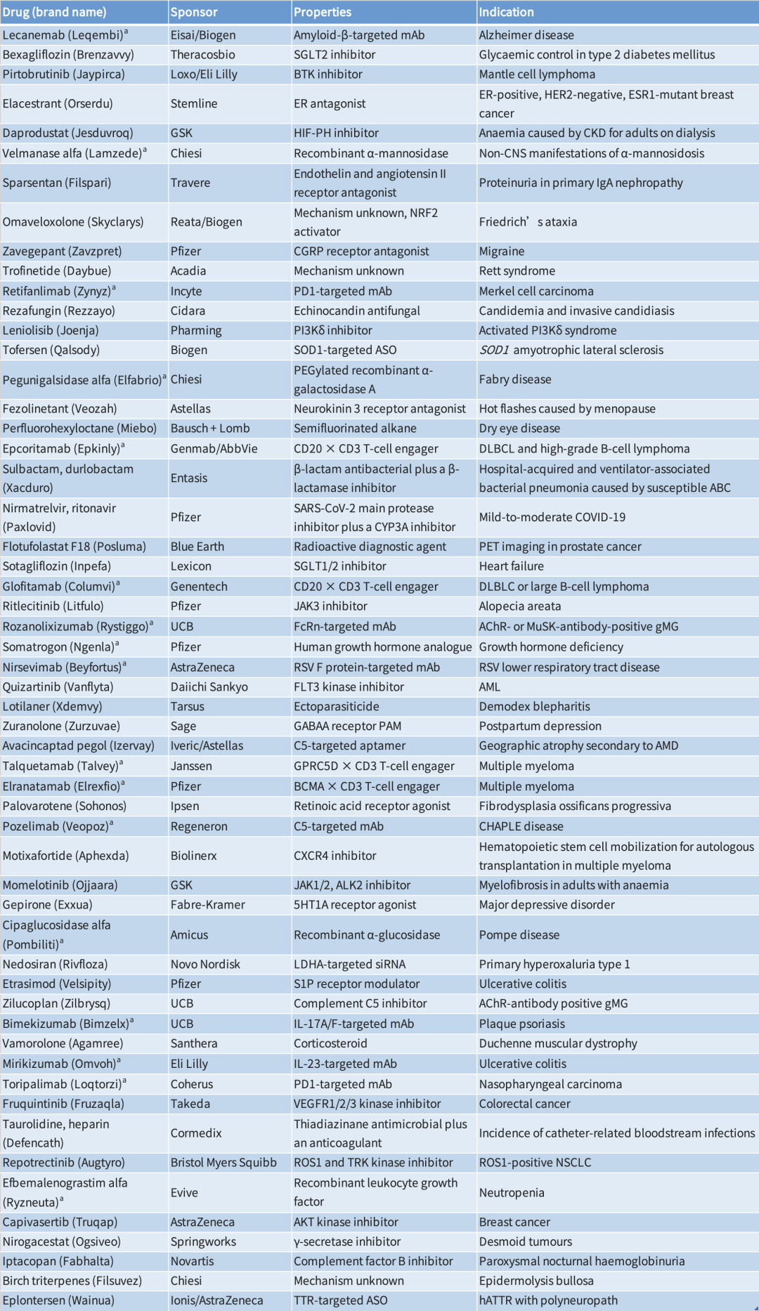 表1:2023年CDER的批准情况