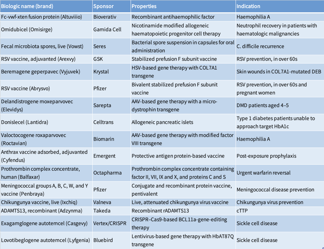表2:2023年CBER批准的部分疗法