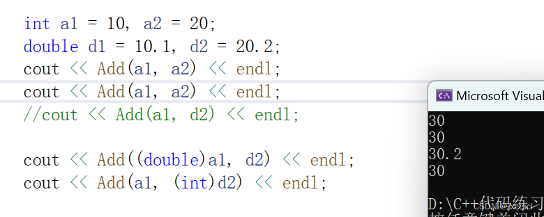 那么怎么解决呢? 1、用户自己来强制转化 可以将a1强转为double 或者将d2强转为int,反正结果不一样。