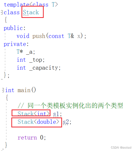 类模板实例化与函数模板实例化不同,类模板实例化需要在类模板名字后跟<>,然后将实例化的类型放在<>中即可,类模板名字不是真正的类,而实例化的结果才是真正的类。