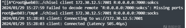 ./chisel client 172.30.12.5:7001 R:0.0.0.0:7000:socks
