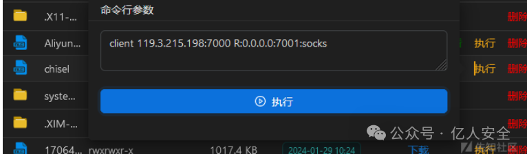 ./chisel client 119.3.215.198:7000 R:0.0.0.0:7001:socks