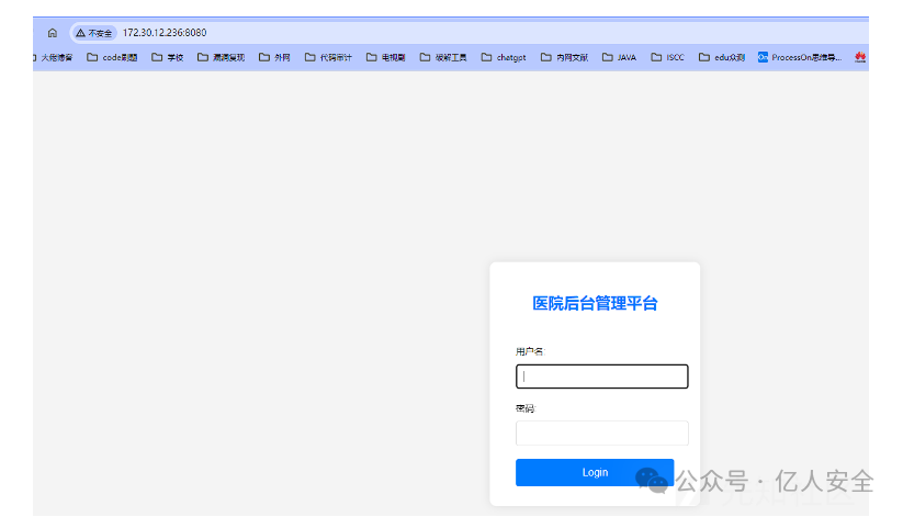 [*] WebTitle http://172.30.12.236:8080 code:200 len:3964 title:医院后台管理平台