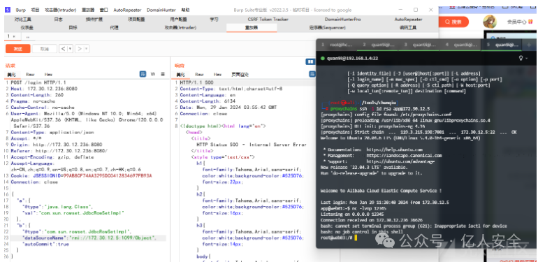 同时在靶机上监听12345端口,待会用于接收shell,然后按如下Payload发包