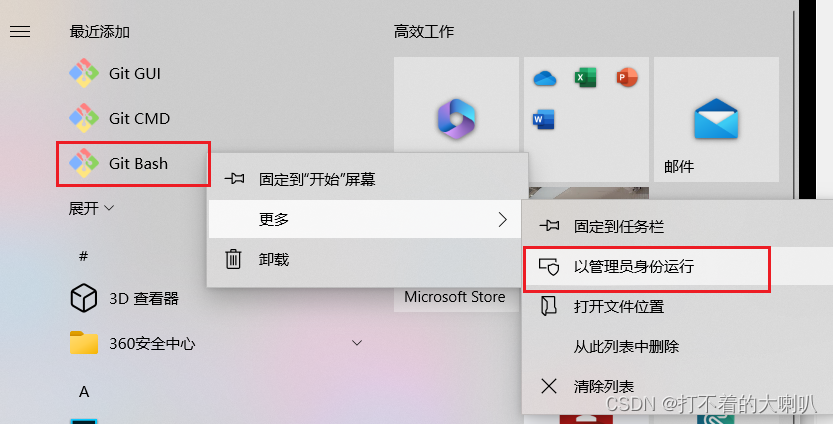 再设置用户名,发现新的错误: error: could not lock config file D:/Git/.gitconfig: Permission denied 大致意思是没有权限操作该文件,我们需要以管理员的身份运行 git bash
