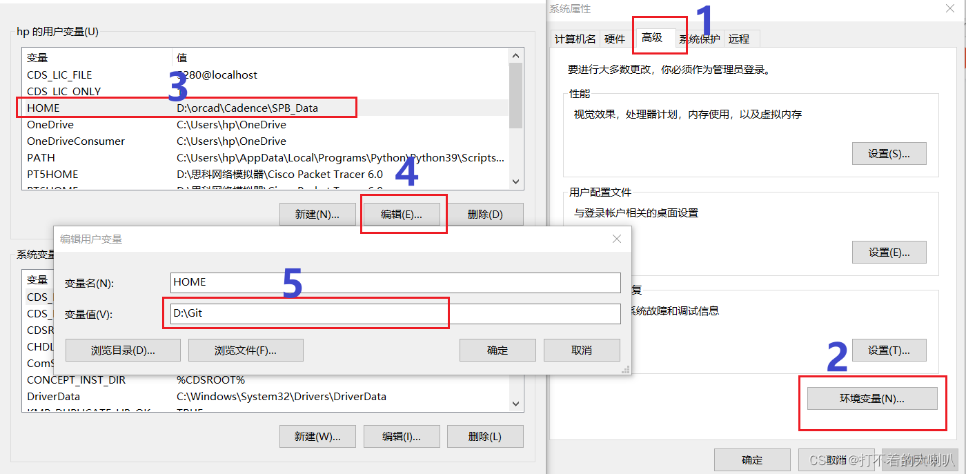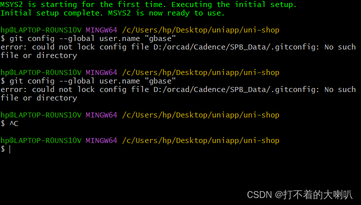 错误:刚刚安转完毕Git,配置用户名、邮箱时,出现了错误 error: could not lock config file D:/orcad/Cadence/SPB_Data/.gitconfig: No suchfile or directory