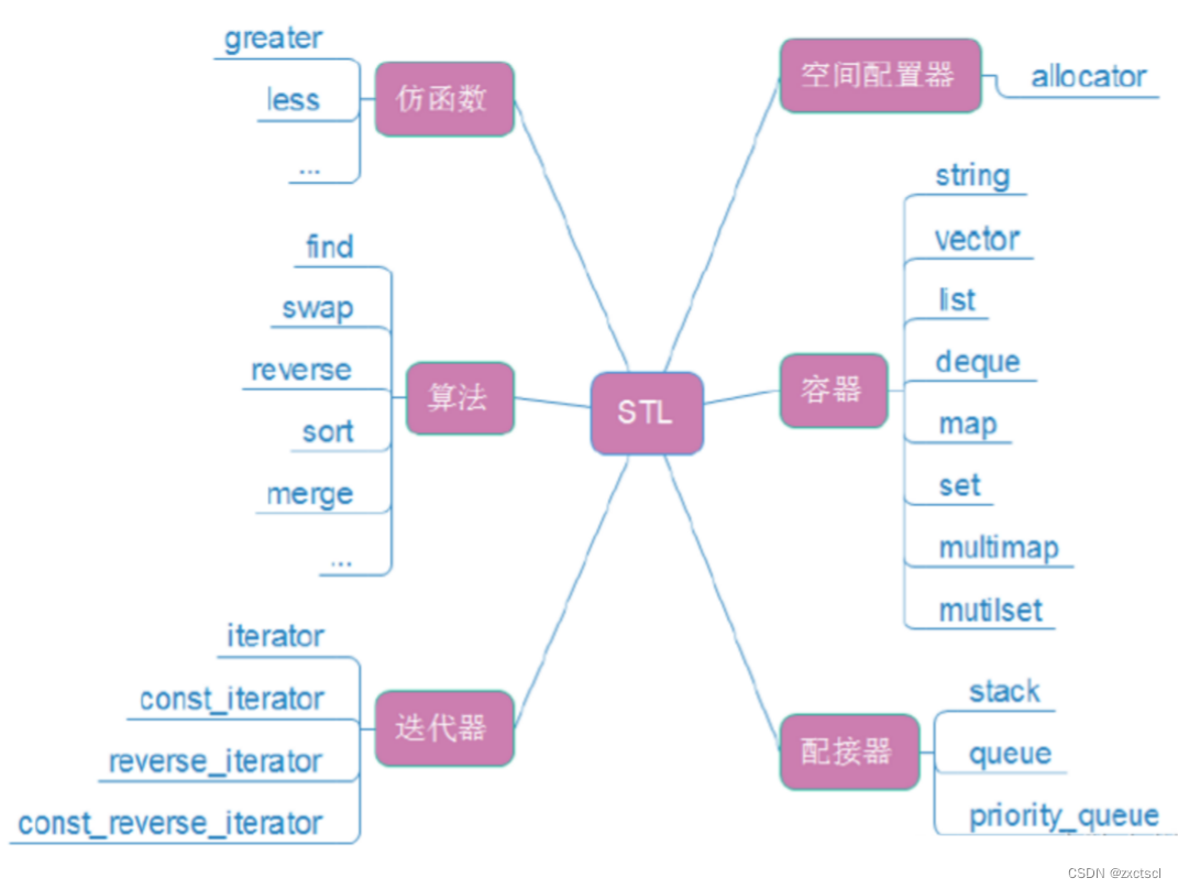 - 容器(Containers):容器是STL中最重要的组件之一。它提供了各种数据结构(如数组、链表、堆、映射等),用于存储和组织数据。常用的容器包括vector、list、deque、set、map等。