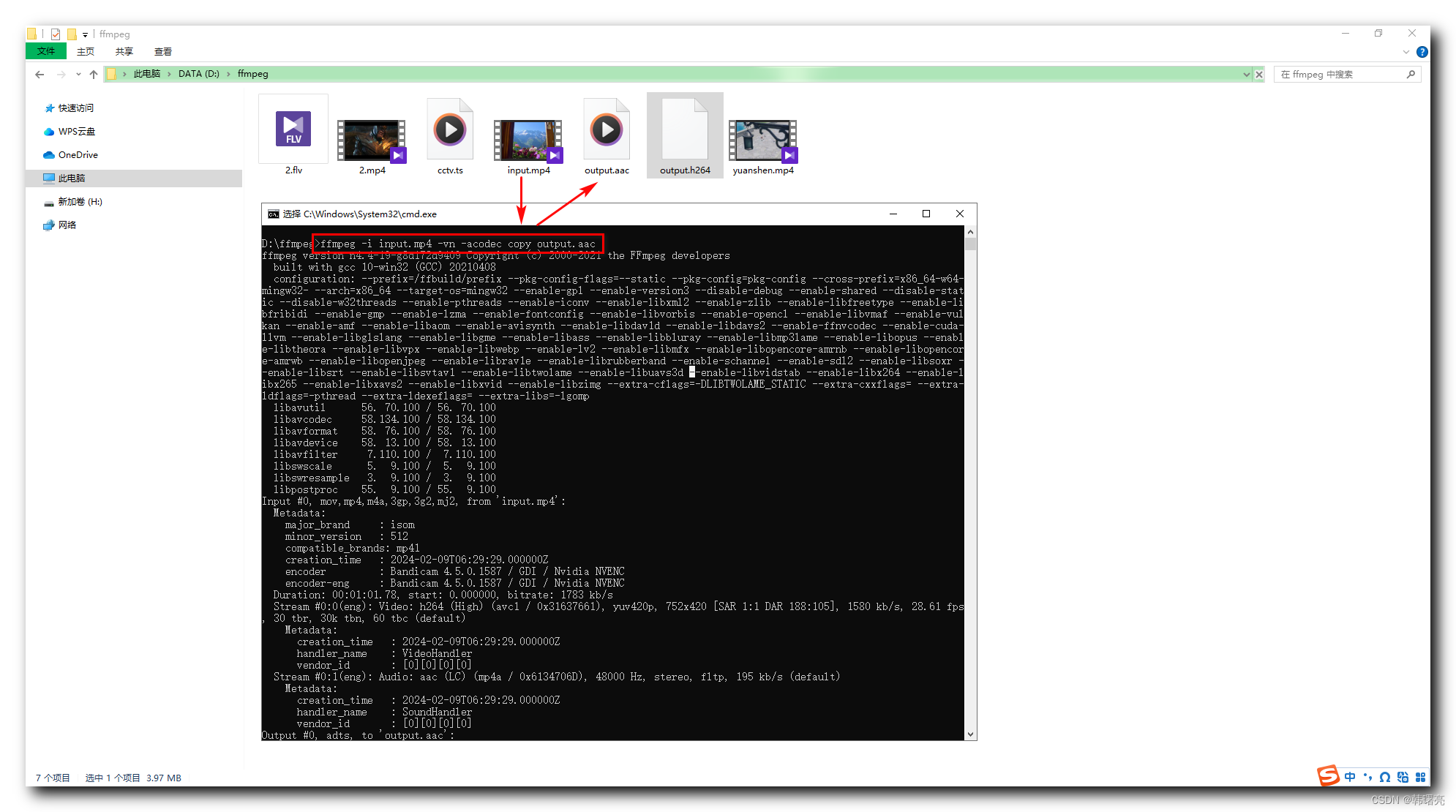 ffmpeg -i input.mp4 -vn -acodec copy output.aac命令过程 ;