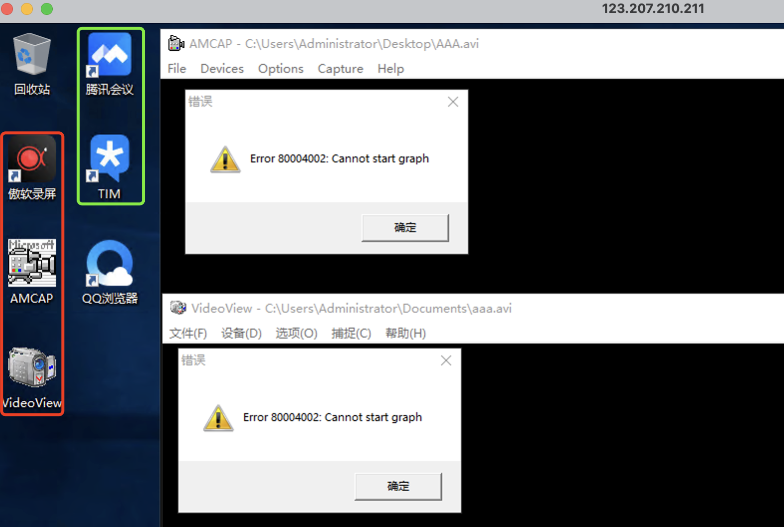 并非所有软件都能兼容远程摄像头,这不是系统限制或硬件限制,而是软件本身,比如我测试腾讯会议和QQ(TIM)调用远程摄像头能正常使用,但一些只能调用本地摄像头的软件则不行,比如下图红色圈出的软件。