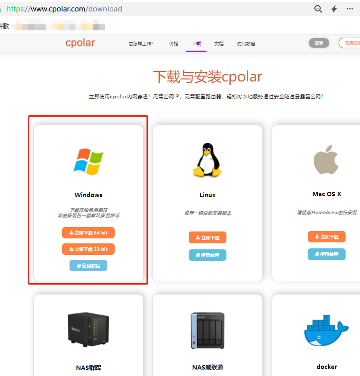 笔者使用的是Windows操作系统,因此选择Windows版本的cpolar进行下载。