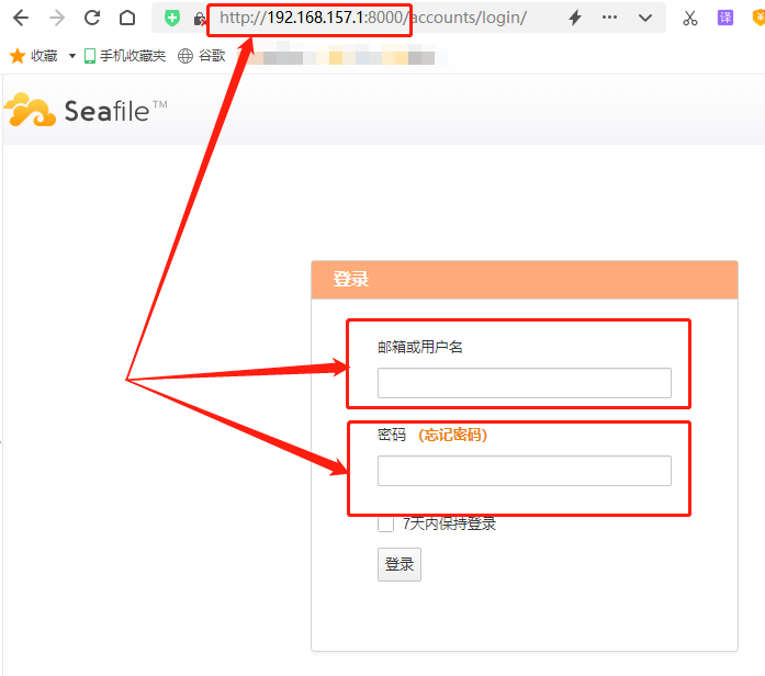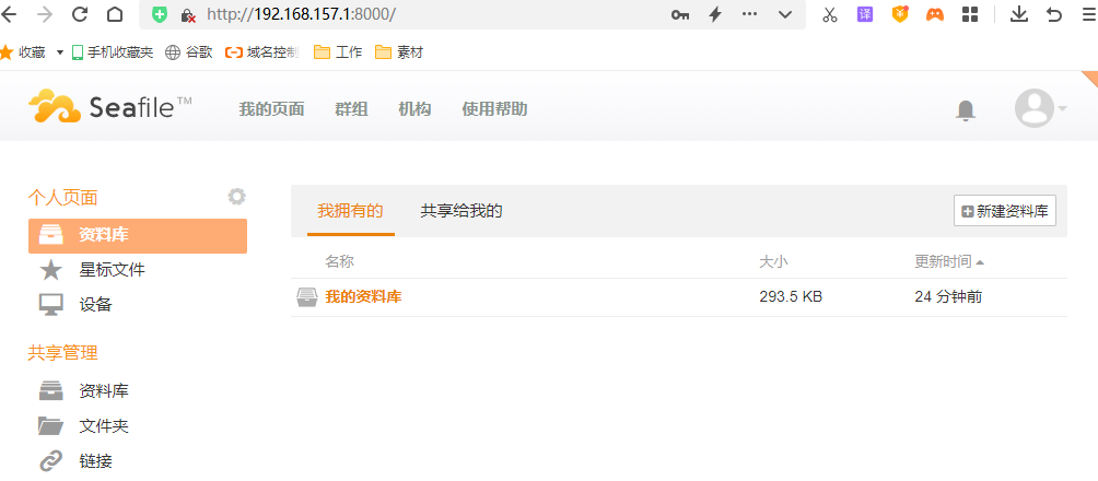 我们只要将这个地址粘贴到其他设备的浏览器中,就能访问到seafile的服务器。