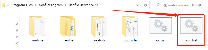 然后双击解压后文件夹里的run.bat文件,seafile server就会自动开始安装。