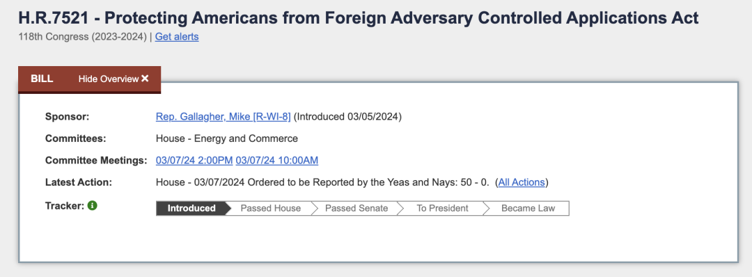 两天后,美国国会众议院能源和商务委员会就以 50 比 0 的投票决议通过了该提案。